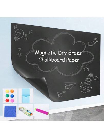 JILLYJOLLY 1 st magnetisk torrsuderlig svarttavla, självhäftande kritpapper, avtagbar svarttavla, väggklistermärke, 40*60 cm/15,7*23,6 tum, 45*100 cm/17,7*39,3 tum, graffiti, kan användas för kontor/undervisning, skolmaterial, skolstart - Multifärgad - Visa 9