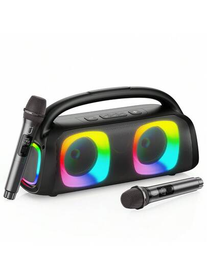 JYX Karaoke Machine With 2 Wireless Microphones, Portable Bluetooth 5.3 Karaoke Speaker For Party, PA System For Adults With Echo Adjustment/Remote Control/LED Lights, Support TV/USB/AUX/TF Card - Black - View 1
