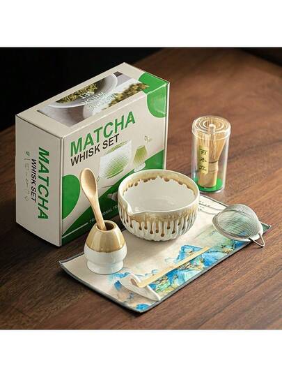 Japanese Kiln-Fired Matcha Tea Set, Including Tea Bowl, Whisk, Stand, Suitable For Home Use, Song Dynasty Style Tea Ceremony Tools - Multicolor - View 1