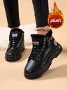 Snöstövlar med dragkedja för kvinnor med högt skaft Termofodrade tjocka läderstövlar med hög topp Varma vattentäta utomhus Casual snöstövlar, unisex-stil för par