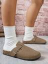 Damtofflor i enfärgad mocka med slip-on-detaljer, tillgängliga i termofodrade och icke-termofodrade versioner.