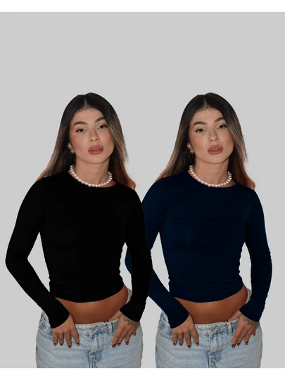 KIT 2 BASIC BLOUSE SECOND SKIN LONG SLEEVE COLD ROUND NECK ELEGANT CASUAL AITONA SCARF
