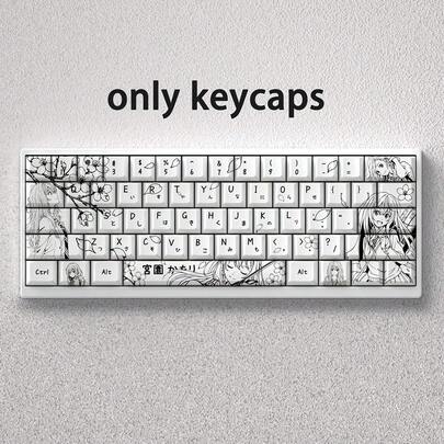 Kaori Keycaps - Cherry Outline Cute Keycaps - 73 Keys - 5-Sided Dye-Sublimated PBT Material - Suitable For 60/65/68 Mechanical Keyboards - Standard Height - Minimalist Style - Line Art Design - Kaori Miyazono Theme - View 1