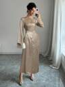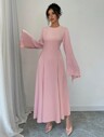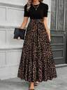 Elegant A-linjeformad midiklänning med geometriskt tryck, puffärmar och rosettdetalj för kvinnor - Vibrerande orange/blågrön/svart/vit/grön, rund halsringning, maskintvättbar, vår/sommar, vardagligt till semi-formellt, säsongsmode, feminin stil, lätt tyg, snygga kvinnor