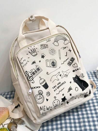 Multifunktionell ryggsäck med tecknad katttryck för barn - Vitt - Visa 1