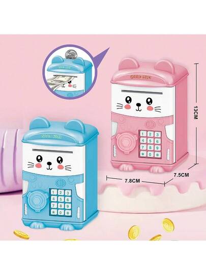 Kindergarten Children Birthday Gift Toy, Password Saving Cabinet-Realistic Deposit & Withdrawal Children's ATM Money Box, Cartoon Password Smart Piggy Bank, Creative Coin Password Storage Box, - Multicolor - View 1
