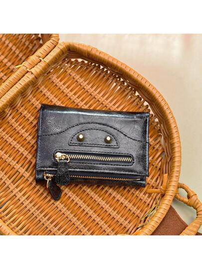 Koreansk stil minimalistisk enfärgad korthållare med nitar Dekoration Multifunktionell Pu-läderplånbok I lager för män Plånbok Plånbok Plånbok Liten plånbok män Plånbok Läder - Svart - Visa 4