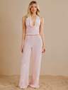 L'Amorae Elegant smörgul satin maxiklänning med rygglös krage och krage