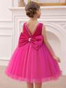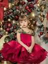 Julfestklänning för tweenflicka, elegant brudeflicksklänning med rosettdekor, puffig prinsessklänning i tyll, lämplig för flickor, brudeflicka, bröllop, fest, födelsedag, bal, speciellt tillfälle