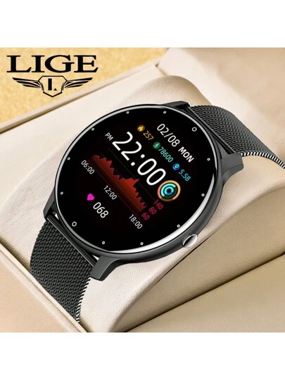 LIGE Smart Watch for men women Pedometer, calorie, call reminder, waterproof fitness sports watch, heart rate, blood pressure, sleep, alarm clock, message reminder, weather, photo, sedentary reminder Smart bracelet for android ios - Black - View 1