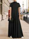 Långärmad höghalsad enfärgad klänning för kvinnor, avslappnad swingklänning med t-shirt (med fickor)