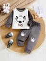 Babypojke 2 st/set med huva och bokstavstryck, set med byxor