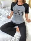 SHEIN Contrasting Slogan Print Raglan Short Sleeve Loungewear Top & Shorts 2pcs Set Outfit