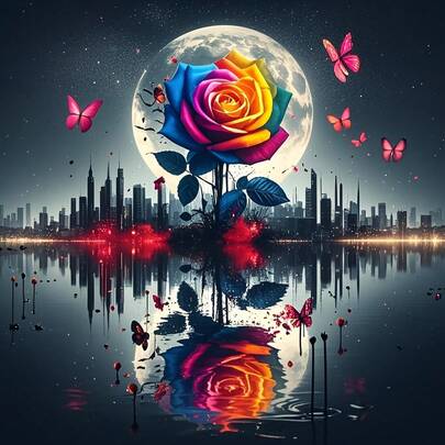 Large DIY Diamond Painting Suitable For: Romantic Rose & Butterfly City Landscape - Large Round Acrylic Wall Decor, Colorful Diamond Art, DIY Handcraft Project, Ideal Christmas Gift, Suitable For All Ages (Floral Pattern)