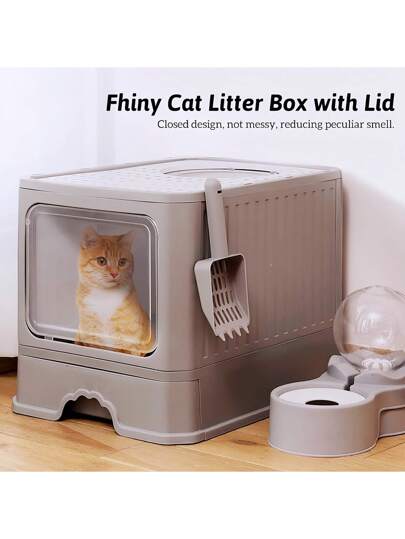 Stor helt sluten kattsandlåda, med låda och övre ingång, luktsäker och stänksäker (50CM*40CM*40CM) - Multifärgad - Visa 1
