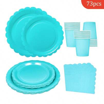 Light Blue Petal Shaped Disposable Plates, Napkins, Cups - One-Time Party Supplies Set, Suitable For 16 Guests, Disposable Paper Plates Party Tableware For Birthday, Wedding, Theme Party, Family Picnic