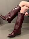 Moderiktiga och bekväma bantningsbara, halkfria överknee-stövlar för kvinnor, spetsiga tåstövlar i västerländsk stil med nitar, tjocka retro-stövlar med hög klack, byxstövlar