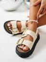 Kvinnor Wide Fit Mode Metallic Spänne Platform Wedge Slide Sandaler