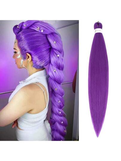 Long Purple Braiding Hair Pre Stretched Synthetic Braiding Hair Extensions For Braids, Purple Hair Extensions For Stage Party Halloween Costume Cosplay - Multicolor - View 1