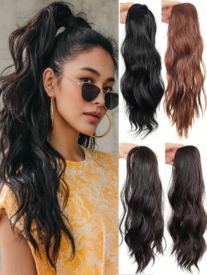 Long Wavy Claw Clip Ponytail Hair Extension, Available In Black/Brown, Suitable For Women's Daily Wear - Multicolor - View 1