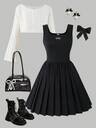 SHEIN Sweetra Young Tonåring Flickans Lapptäcke Spets volang Armhåla Klänningar