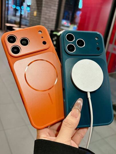 Luxury Matte Magnetic Wireless Charging Phone Case Compatible With IPhone 17 ProMax 17 Pro 16 Pro Max 15 14 13 12 Pro Max 14 15 16 Plus Cases Shockproof Back Cover - Orange - View 1