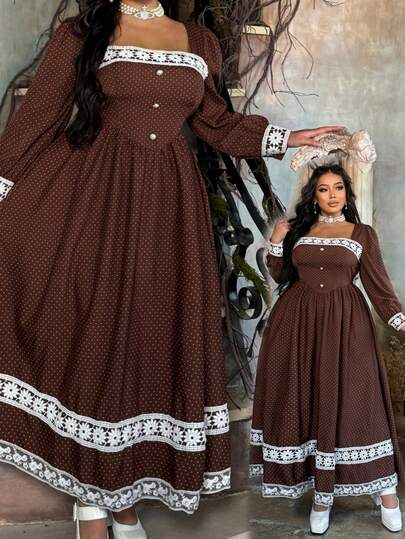 Lyrianda Prickig kontrasterande spetsklänning med puffärmar, elegant, lämplig för vår, sommar, höst, semester, klänning med smal midja - Multifärgad - Visa 1