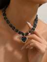 1 st High-End guld hjärtformad harts & naturligt litet stenhängande halsband, multi-hängande Y-formad design, lämplig för fester, semester, presenter till älskare, varje sten och hartsbit väljs slumpmässigt i storlek och färg