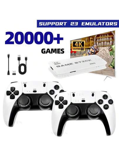 M15 Retro Gaming Joystick, 4K-utgång, Trådlös handkontroll, Plug and Play, Inbyggda 20 000+ spel, Stöder PS1, NES, GBA och arkadspel, Arkadspelkonsol - Vitt - Visa 4