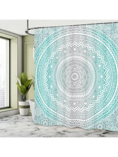 MADE IN TURKEY 100% Polyester Shower Curtain – 175x200 Cm – Includes 12 Plastic Hooks – Water-Repellent – Machine Washable - Teal Blue - View 1