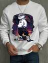 Herr Plus Size INS Style Mona Lisa & Bokstav Figur Tryck Rund Hals Kortärmad Avslappnad Lös T-shirt, Sommar, Emo