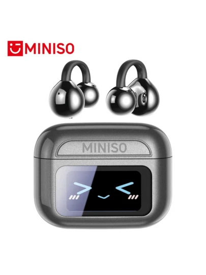 MINISO MS201 Al Clip-On EarHörlurar, Översättningshörlurar. Översättning på 134 språk med app med audiovisuell pekskärm, Bt 6.0Hörlurar, Trådlösa hörlurar för musik och telefonsamtal - Svart MS201 AI - Visa 1