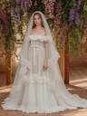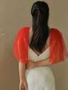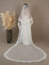 En lång, dubbelskiktad, volangformad brudslöja, elegant och enkel, är ett idealiskt val för en kvinnas brudklänning
