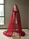 1 par långa brudhandskar med lyktaärm, fingerlösa handskar med satinbandkant i nät, romantiska avtagbara ärmar för bröllopsklänning, höstaccessoarer