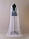 En svart, lång, hängande kappa/mantel prydd med pärlor, perfekt för en vintagelook och Halloween-cosplay
