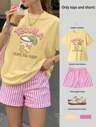 Blommigt tryck damöverdimensionerat kortärmat topp randiga shorts kostym damer sommar fritid tvådelade kostymer fritid damkläder kustsemester sommar tvådelade kläder, kinesiskt nyår, kinesiskt nyår, året på hästens år, vårfestival, gott nytt år, alla hjärtans dag, alla hjärtans dag present, alla hjärtans dag present till henne, alla hjärtans dag present