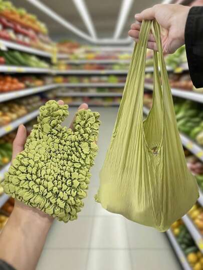 Magic Stretch Tote Bag For Women Retractable Shopping Handbag Large Capacity Reusable Shopping Bag Multi-Color Foldable Shopping Bag Travel Essentials Pineapple Bag Wrinkled Bubble Bag For Travel Camping Outdoor Beach Summer Vacation Back To School - Multicolor - View 9