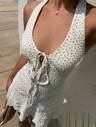 MainGRL Damtopp med elegant vit satinringning och halterneck, sommar