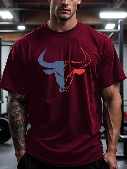 6. Manfinity Sport Corelite Men's Bull Print Red Round Neck Short Sleeve Sports T-Shirt