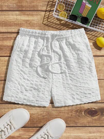 Manfinity BRENVOR Män Solid dragsko i midja Shorts Baggy Board Linne Cool Vanligt Helvit Vacation Boho - Vitt - Visa 1