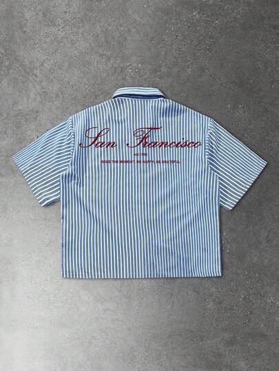 Manfinity EMRG Men's Casual Striped Letter Print Shirt, Summer