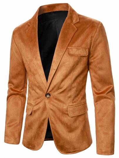 Manfinity Mode Herrkavaj med hakslag, fuskfickor, Old Money-stil - Kamel - Visa 1