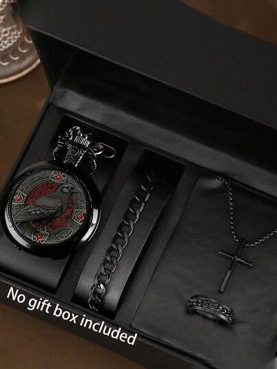 Mellanstort färgglatt mönster retro flipfodral dekorativt fickurshalsband, unikt kvarts fickursset för män och kvinnor, studenter - En-Storlek - Visa 4