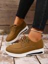 Dam Nya Enfärgade Canvas Kilklackar Tjocka Sulor Sportiga Semesterstil Mode Mångsidiga Bekväma Andningsbara Snörskor Med Snörning Casual Sneakers, Lämpliga För Resor & Semester, Hela Säsongen
