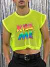 Mesh Sexy Hollow-Out Crop Top Tank, Colorful Graphic Print Streetwear Top