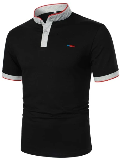 Manfinity Knapp Broderi Kontrast Bindad Färgblock Office Herr Polo Skjorta - Svart - Visa 1