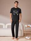 3pcs Casual Men's Short Sleeve T-Shirt, Shorts & Pants 3 Pieces Pajama Set