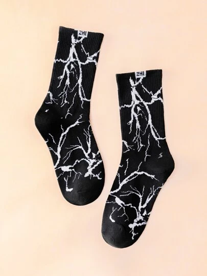 Grafiskt tryckt texta Crew-strumpor - Svart - Visa 1