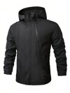 Manfinity Homme Men's Plus Size Elegant Men's Business Coat In Black With Water-Resistant Fabric And Stylish Design,Men's Black Regular Fit Business Jacket With Zipper And Collar For Commuting, Outdoor Windbreaker