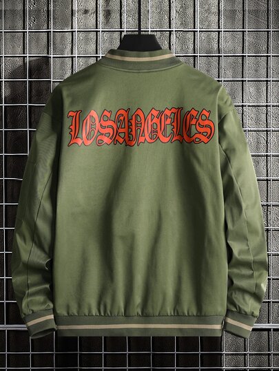 Men Striped Trim Drop Shoulder Bomber Jacket Without Tee - Army Green - View 1